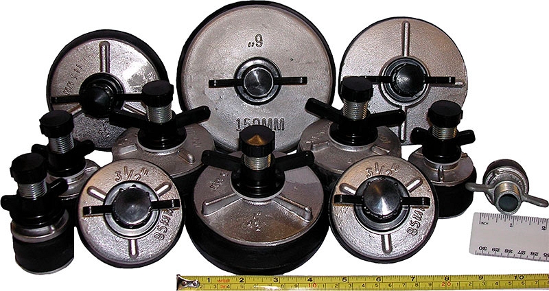 Алюминиевые заглушки для труб Huntingdon Fusion Techniques PSP3150 (Хантингдон Фьюжин Текникс ПСП3150) – проходные металлические заглушки для труб Ø 146 – 168 мм, давлением до 0,7 бар (10 psi) для перекрытия трубопроводов и канализации при ремонте и сварке; гидроиспытаний; продувки при сварке труб в инертной среде; ремонта и монтажа труб и трубопроводов; обслуживания и ремонта воздуховодов; тестирования автомобильных радиаторов; предотвращения проникновения грязи, грызунов, насекомых.