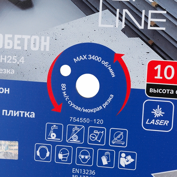 - Высокопроизводительный: более высокий ресурс и производительность по сравнению с алмазными отрезными кругами типа Turbo