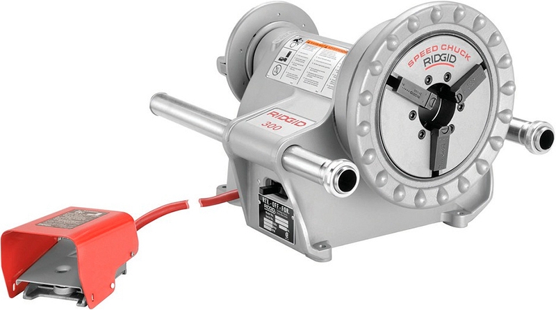 Универсальный электропривод с автоматической смазкой Ridgid 300A (Риджид 300А) легко преобразуется в переносной резьбонарезной станок 300AAC для нарезки трубной конической, цилиндрической, дюймовой, метрической резьбы на трубах Ø 1/8" – 2" (6 – 50 мм), с применением резьбонарезной головки 141 на трубах Ø 2 1/2" – 4" (65 – 100 мм), с применением резьбонарезной головки 161 на трубах Ø 4" – 6" (100 – 150 мм) и болтовой резьбы на болтах Ø 1/4" – 2" (6 – 52 мм). Идеально подходит для применения с желобонакатчиками 916, 918, 920 для накатки желобков на трубах Ø 1" – 24" (25 – 600 мм).